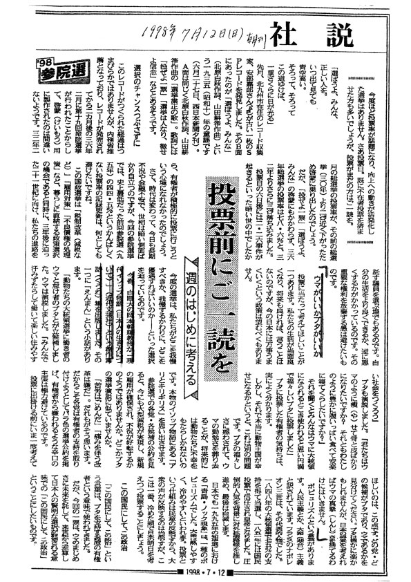1998年7月12日 東京新聞 朝刊 社説